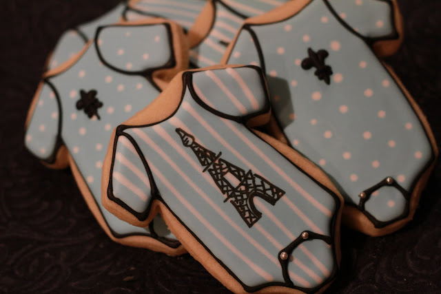 I know the name of my blog is Exquisite Cookies, but I've been making so many cakes lately! I am currently working on a few cookie designs, though, so we'll focus on cookies more my next post, promise! Cupcakes seem to be getting more and more popular for weddings, and I can see why - they're more affordable than a large cake, they are easier to serve, and they are very cute! The other thing that is nice, is you can have a few different designs and colors. You don't have to settle on one element, you can have 3 or more different elements! You can also add a small cake to the top tier to have the tradition of cutting the first slice of cake. These cupcakes were 3 different flavors, spice cake with almond buttercream, chocolate with chocolate buttercream, and red velvet with coconut cream buttercream.